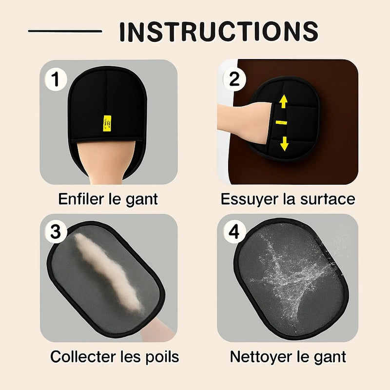 Enfilez, frottez, et les poils disparaissent. Le nettoyage du gant est aussi simple, sans tracas.